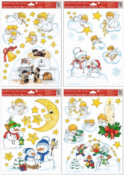 Okenní fólie vánoční barevná,(hvězda, zvonek, anděl, stromek) 33,5x25,5cm