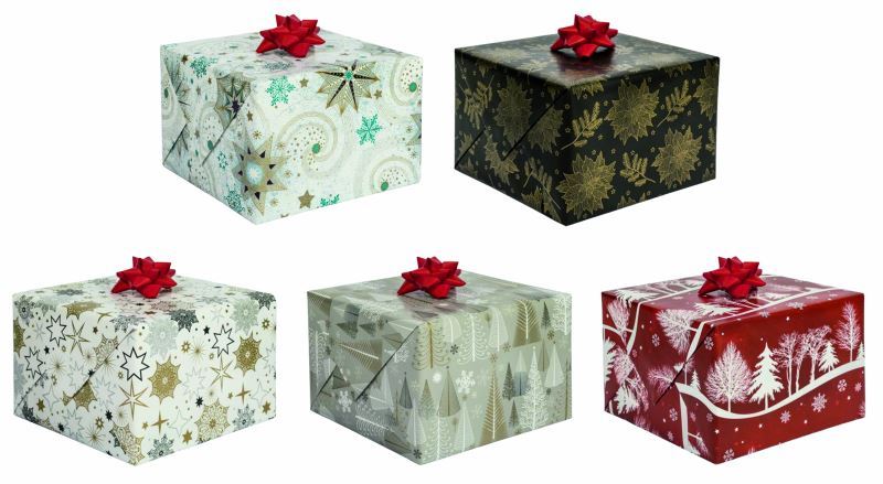 Vánoční balící papír luxusní, mix 5 vánočních motivů, Role 70x200cm.Balení box 50ks