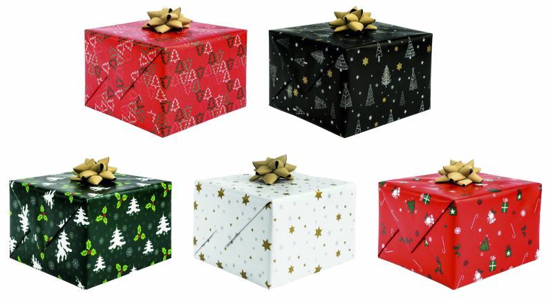 Vánoční balící papír luxusní, mix 5 vánočních motivů, Role 70x200cm.Balení box 50ks