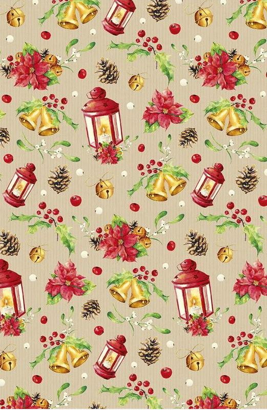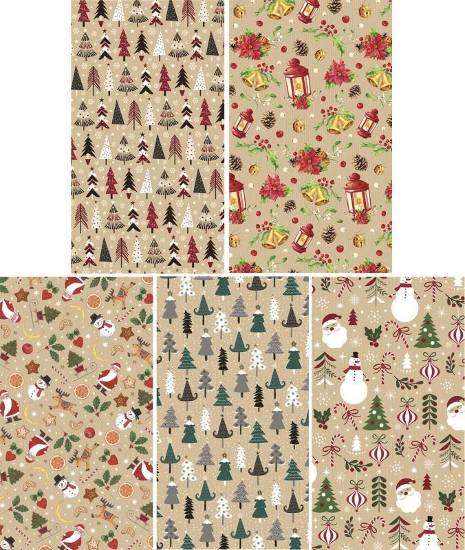 KRAFT balící vánoční dárkový papír v roličkách, rozměr 70x200cm, 60gms papír pevný a silný. 50 rolí v krabici, cena za 1 roličku.