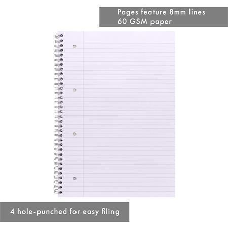 Dvojitá spirála,perforace stran, formát: A4, linkovaný,Obsah: 80 listů (60g/m2),mix barev