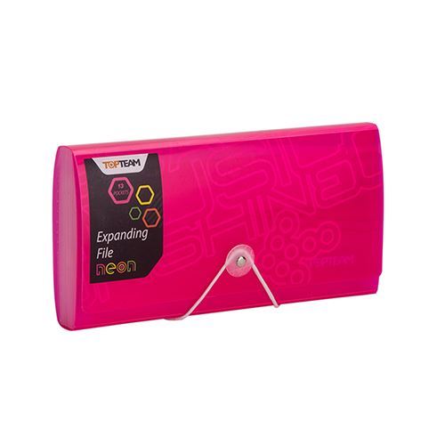 Box na dokumenty DL Expanding File-Neon 13 kapes Fluorescentní Růžová
