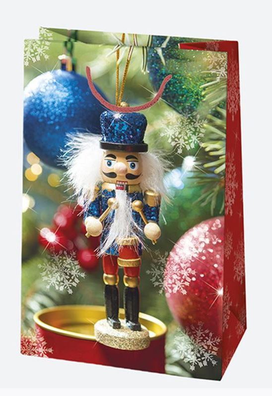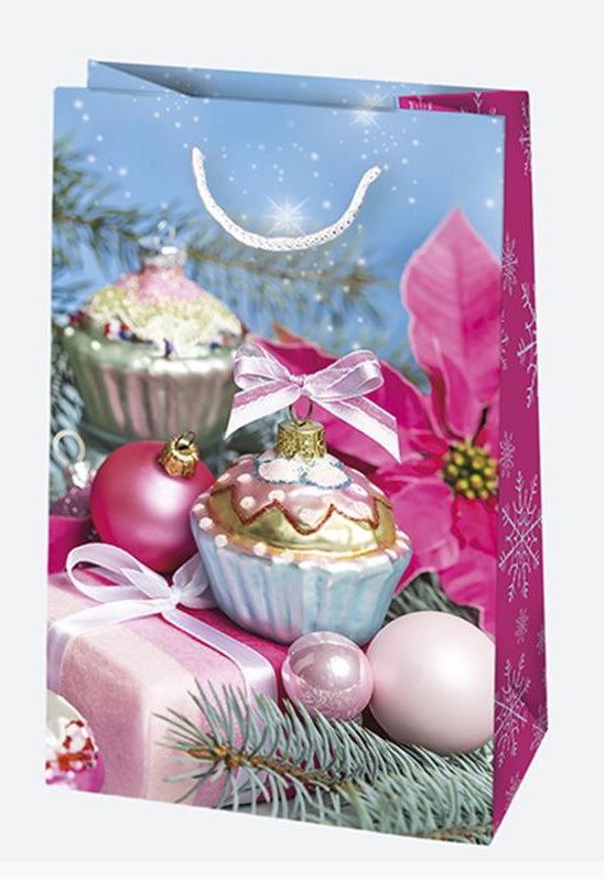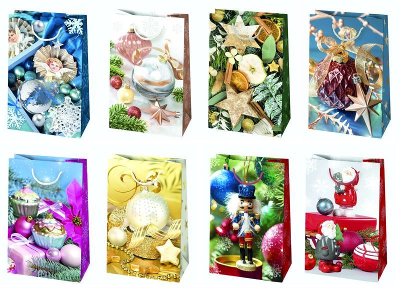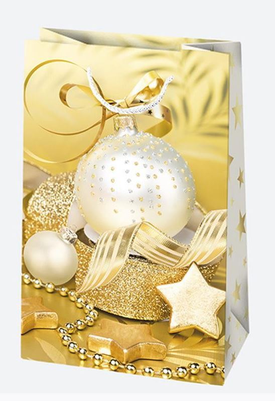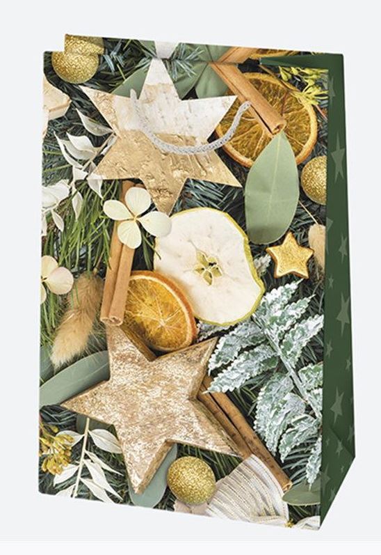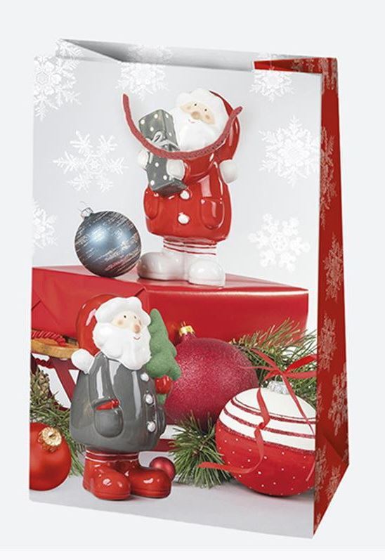 Dárková taška papírová s látkovými uchy s vánočními motivy. Bal 10ks.