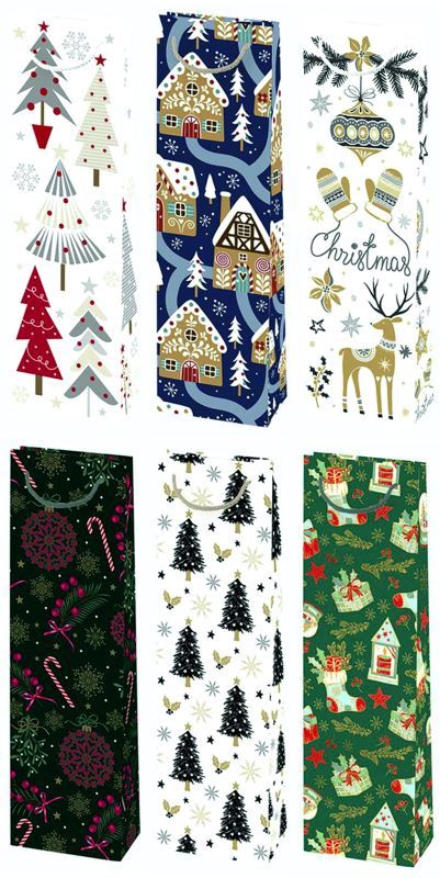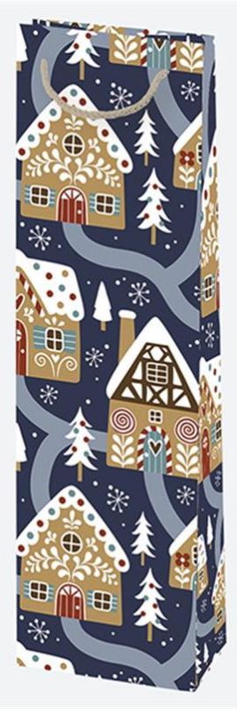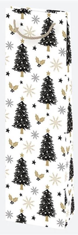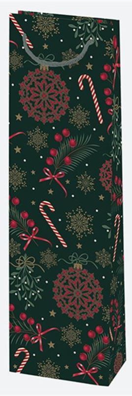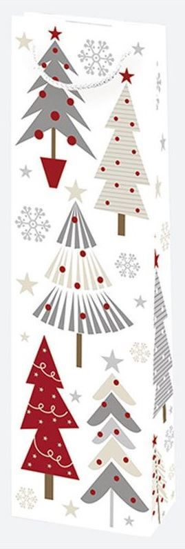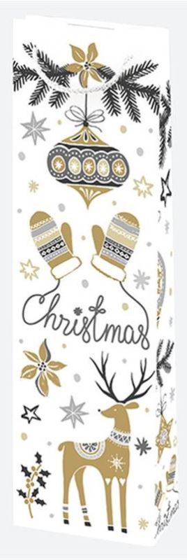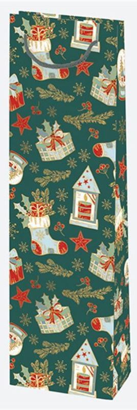 Dárková taška papírová na láhev s látkovými uchy s vánočními motivy. Bal 10ks.