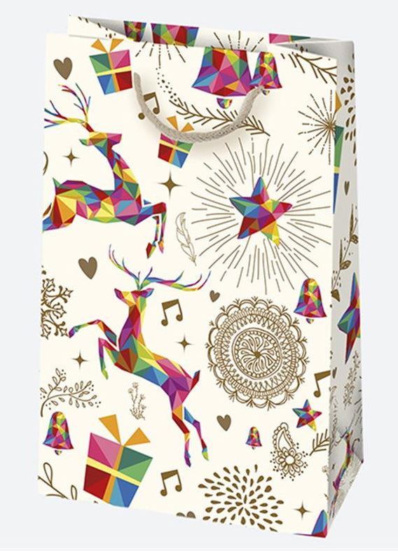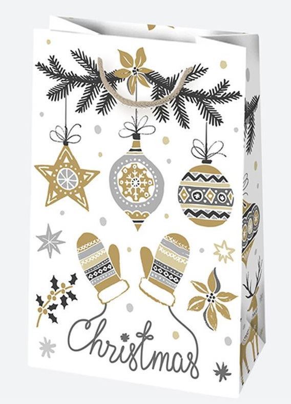 Dárková taška papírová s látkovými uchy s vánočními motivy. Bal 10ks.