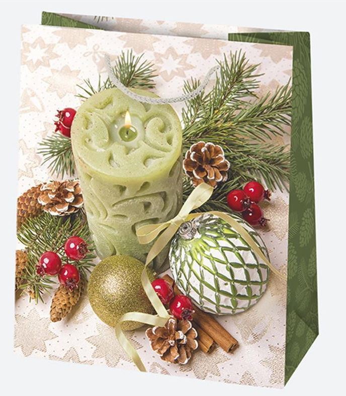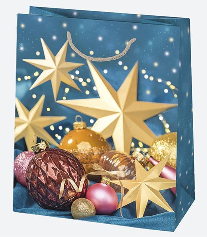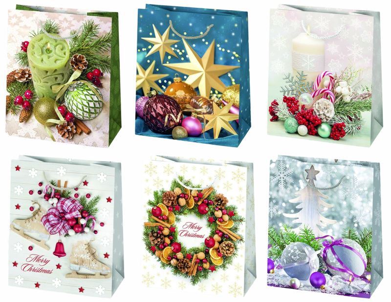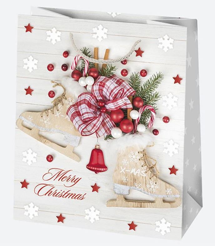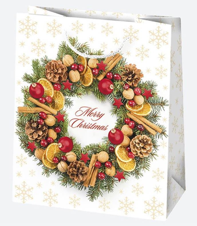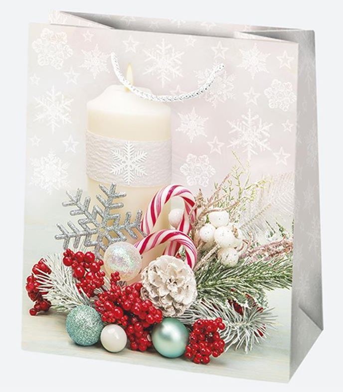 Dárková taška papírová s látkovými uchy s vánočními motivy. Bal 10ks.