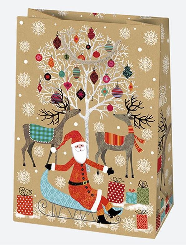 Dárková taška papírová s látkovými uchy s vánočními motivy. Bal 10ks.