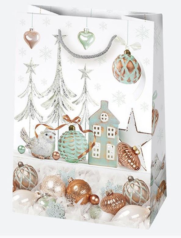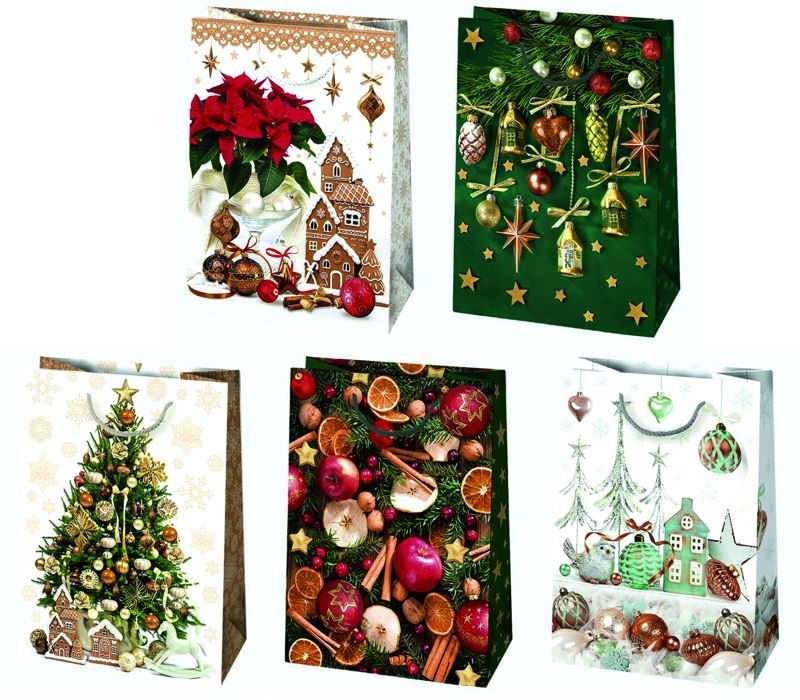Dárková taška papírová s látkovými uchy s vánočními motivy. Bal 10ks.