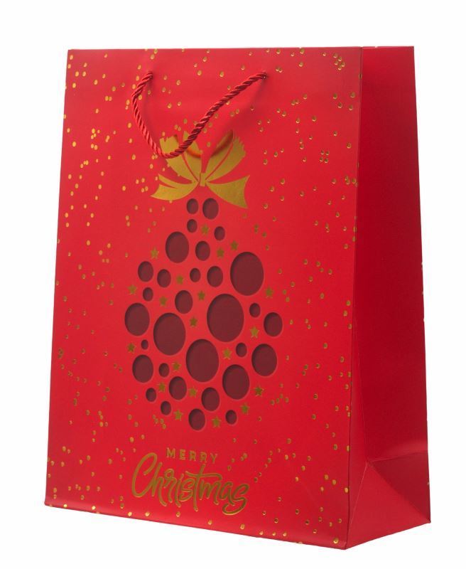 Luxusní papírová dárková taška, červená s vánočním zlatým hot stamping motivem, mix 4 motivů