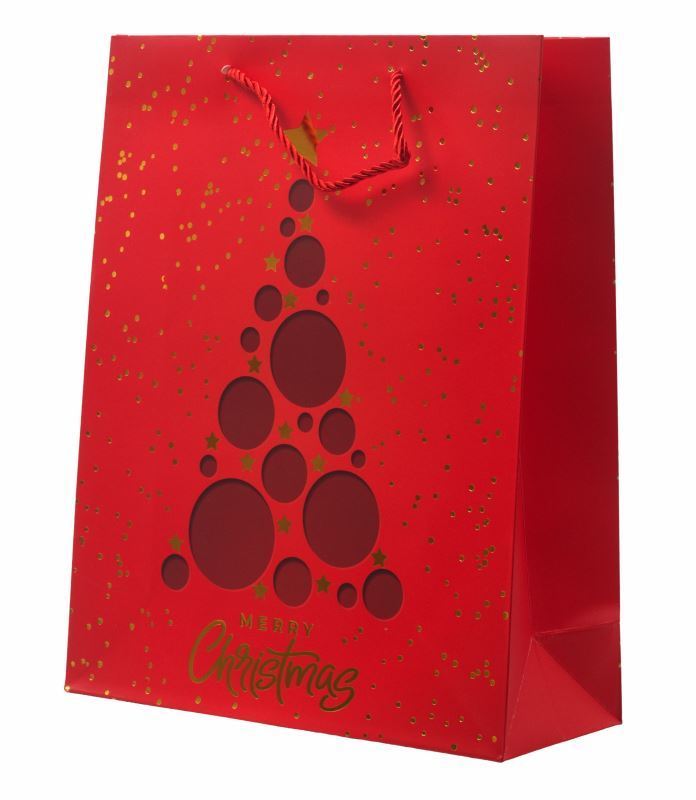 Luxusní papírová dárková taška, červená s vánočním zlatým hot stamping motivem, mix 4 motivů