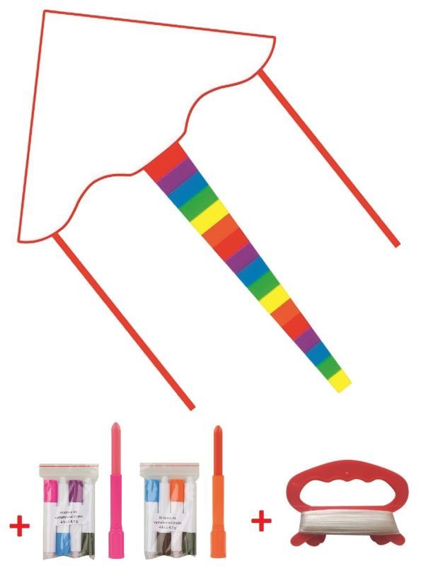 Drak šipka k vymalování, sada obsahuje, barvy na textil a sňůru o délce 30m. S tímto drakem k vymalování můžete rozvíjet svoji fantazii a vytvořit si vlastní originální kousek! Draka můžete ozdobit fixy, různými barvami na textil, barevnými lepidly či glitry. Fantazii se meze nekladou.