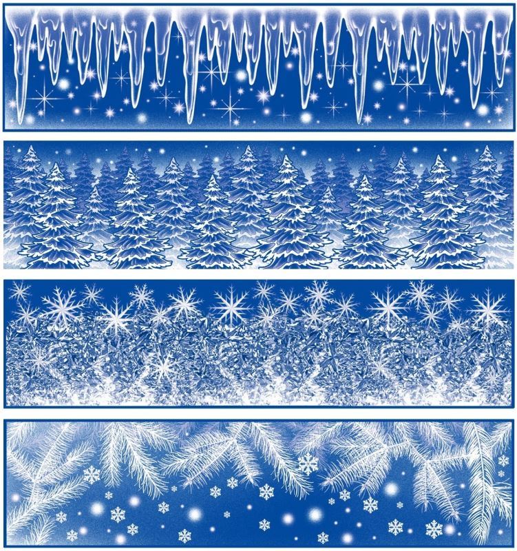 Okenní fólie pruh zamrzlý s glitry - rampouchy, les, větve 59x15cm.