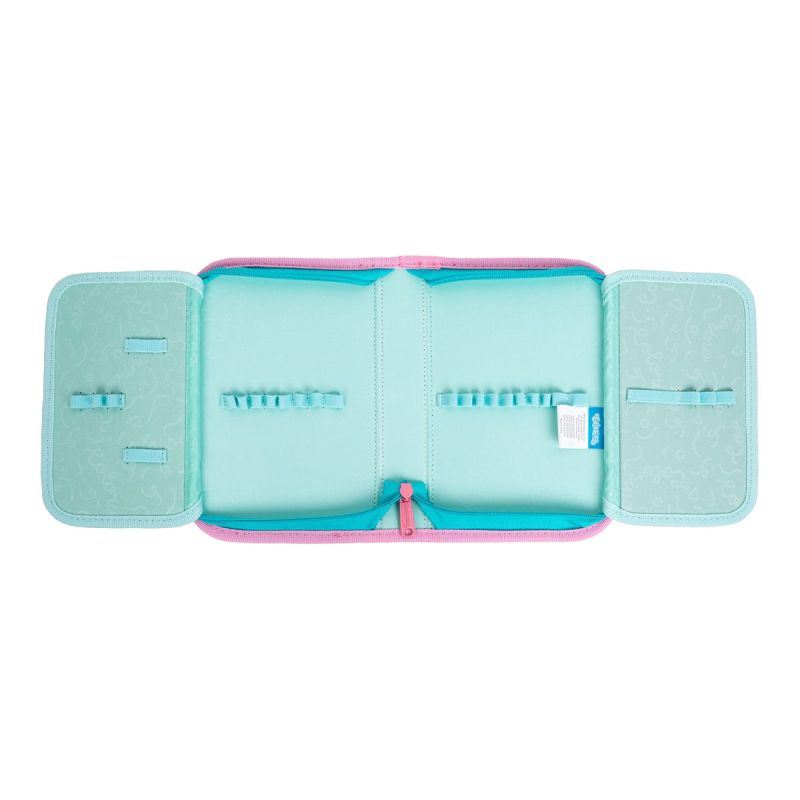 Rozkládací penál s přihrádkami na psací výbavu a jiné doplňky. Dvě postranní chlopně jsou opatřeny transparentní kapsou, chránící obsah penálu. Odolný kovový zip je sladěný s kontrastním s lemováním. Vybavení není součástí penálu.