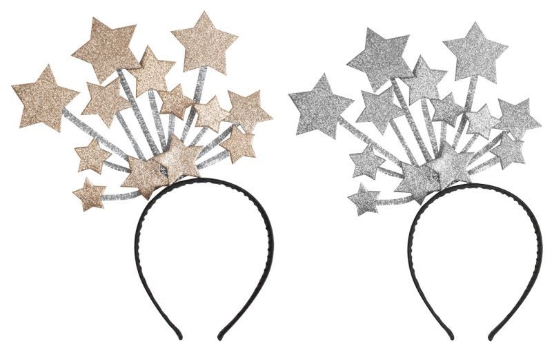 Silvestrovská čelenka se zlatými nebo stříbrnými hvězdami