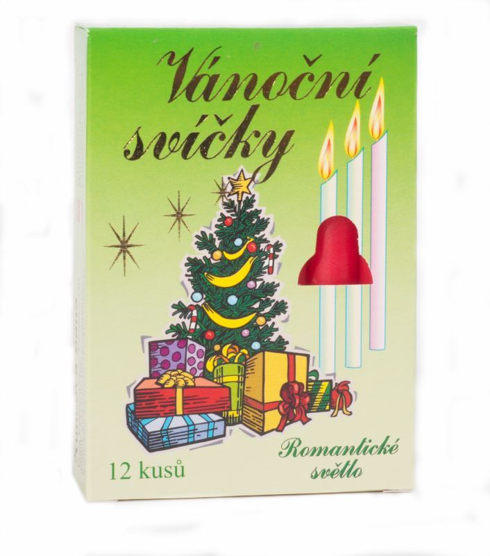 Tradiční vosková svíce, rozměr jedné 9,5cm x 1,2cm. Balení 12ks cena za 1 balení
