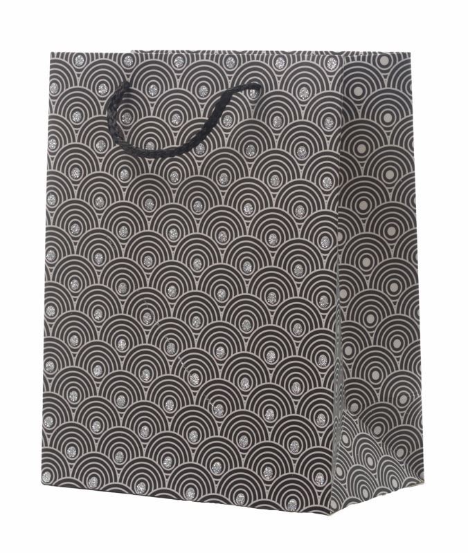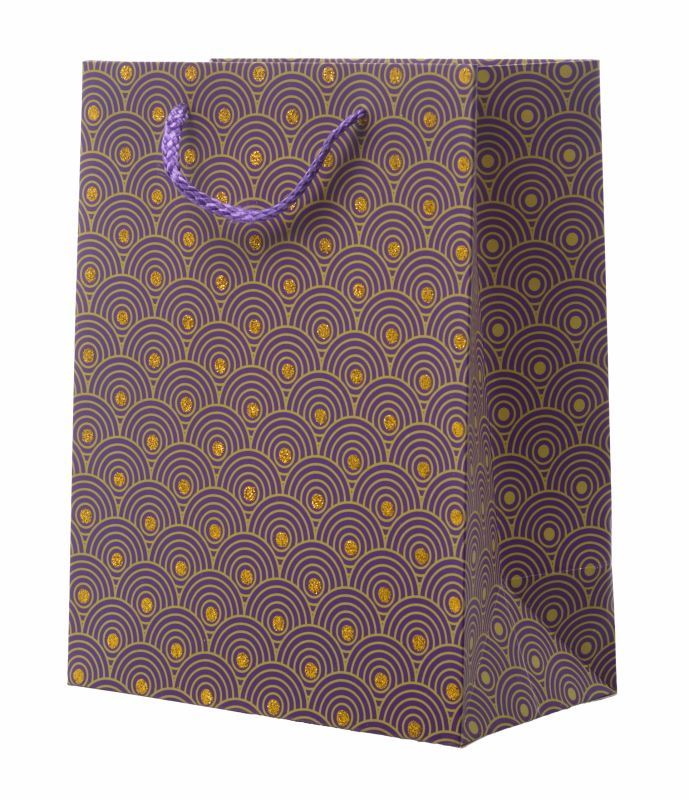 Papírová dárková taška s textilními uchy. Balení po 12 ks. Mix 4 barev.