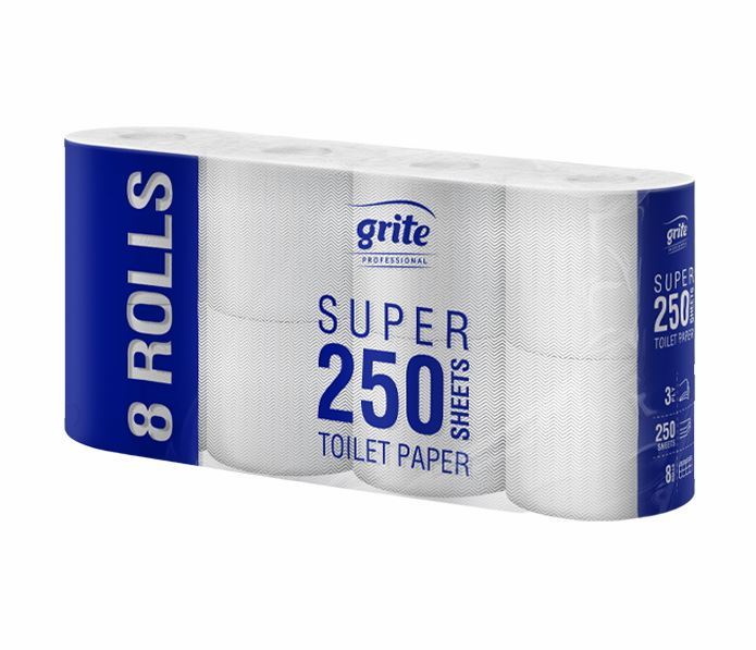 Toaletní papír Grite Super 250 T Sheets představuje kombinaci jemnosti, pevnosti a ekologické odpovědnosti. Vyrobený ze 100% čisté celulózy, tento papír splňuje vysoké hygienické standardy a poskytuje komfortní používání.