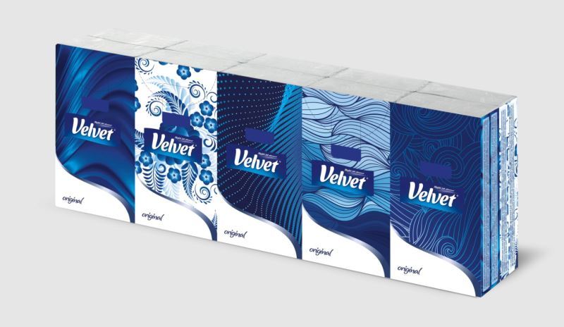 Jemné hygienické kapesníky Velvet Original se skládají ze čtyř vrstev měkkého papíru. Kombinace pěti elegantně sladěných grafických vzorů s klipem, který se pohodlně otvírá, získá uznání i u těch nejnáročnějších zákazníků, kteří si cení profesionální vzhled. Nové kapesníky Original mají výjimečný, jemný vzor na okraji kapesníku s motivem květin, díky čemu je kapesník ještě měkčí. Výrobek má atest PZH.