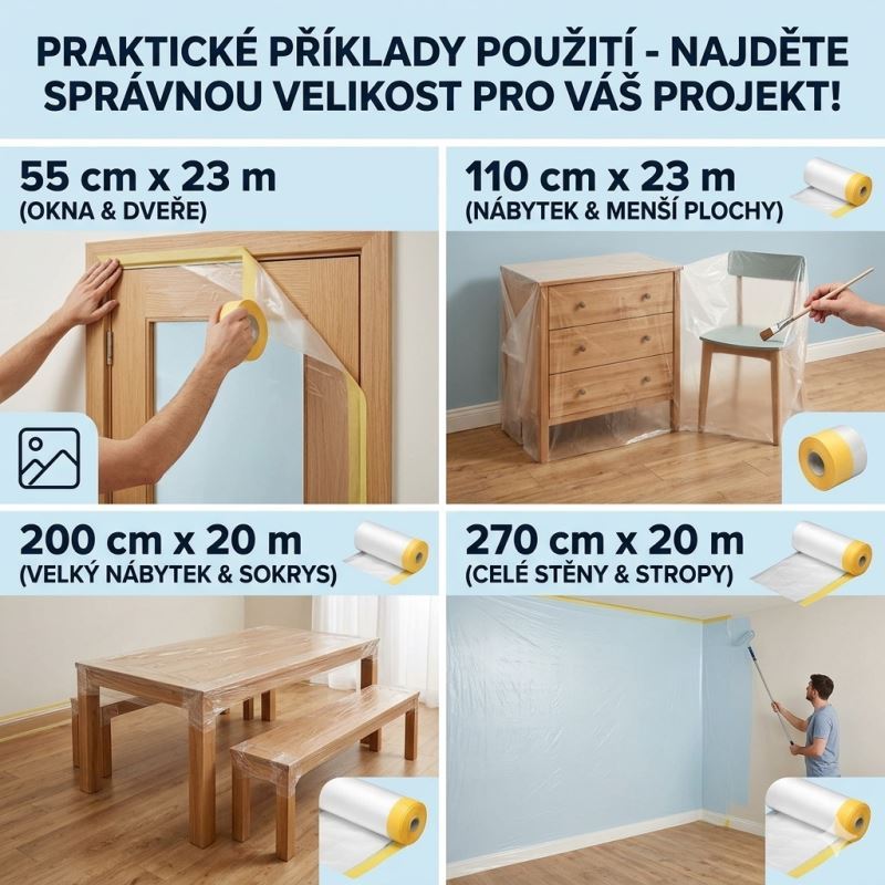 Zakrývací fólie malířská s lepící páskou 110cm x 23m